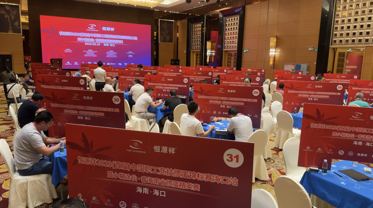 2023年6月10日,在毛泽东同志“发展体育运动,增强人民体质”题词71周年之际,恒源祥2023(首届)中国职工竞技掼蛋锦标赛海口站暨小糊涂仙·睿海南省掼蛋精英赛在海口市君华海逸酒店宴会厅成功举办。