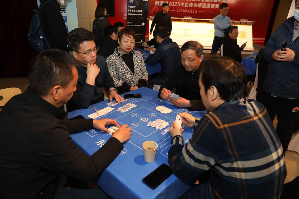 为认真贯彻党中央国务院有关决策部署,推动职工体育工作和全民健身运动的健康、持续发展,发挥智力运动在“健康中国”战略中的重要作用, 4月1日上午,中国企业体育协会掼蛋专业委员会成立暨2023(首届)中国职工竞技掼蛋锦标赛启动仪式在北京恒源祥大厦举办。来自国家体育总局、中企体协、各行业体协、各省市棋牌运动相关管理机构的领导、在京媒体界嘉宾150余人出席了仪式。